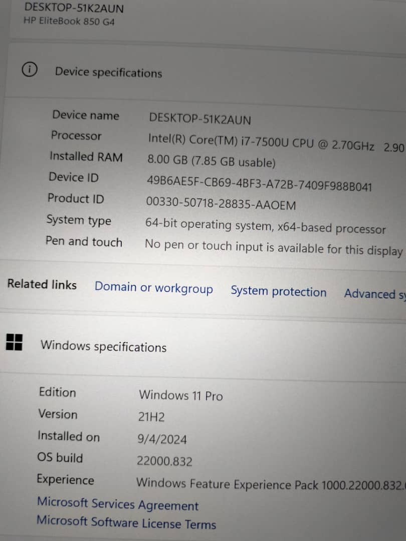 UK Used Hp Elitebook 850 G4 Intel core i7 Vpro SSD – 256GB _. 8GB RAM , Turbo Boost processor _ 4GB Total HD Graphics Display, Slick Ultrabook PC.- Keyboard light