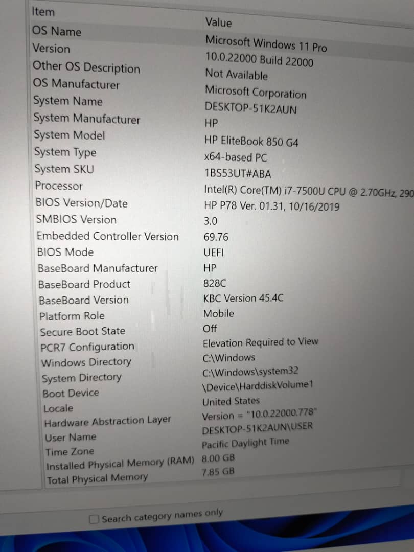 Model : ELITEBOOK 850