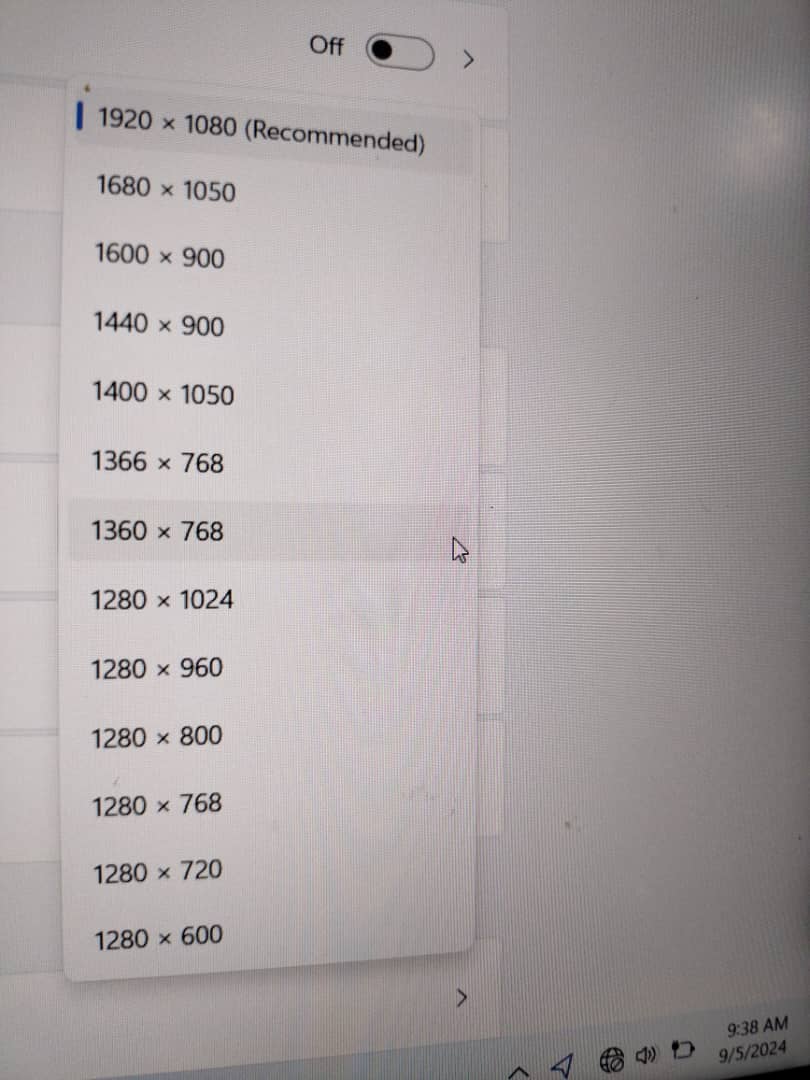 Resolution : 1920 x 1080, 60 Hz