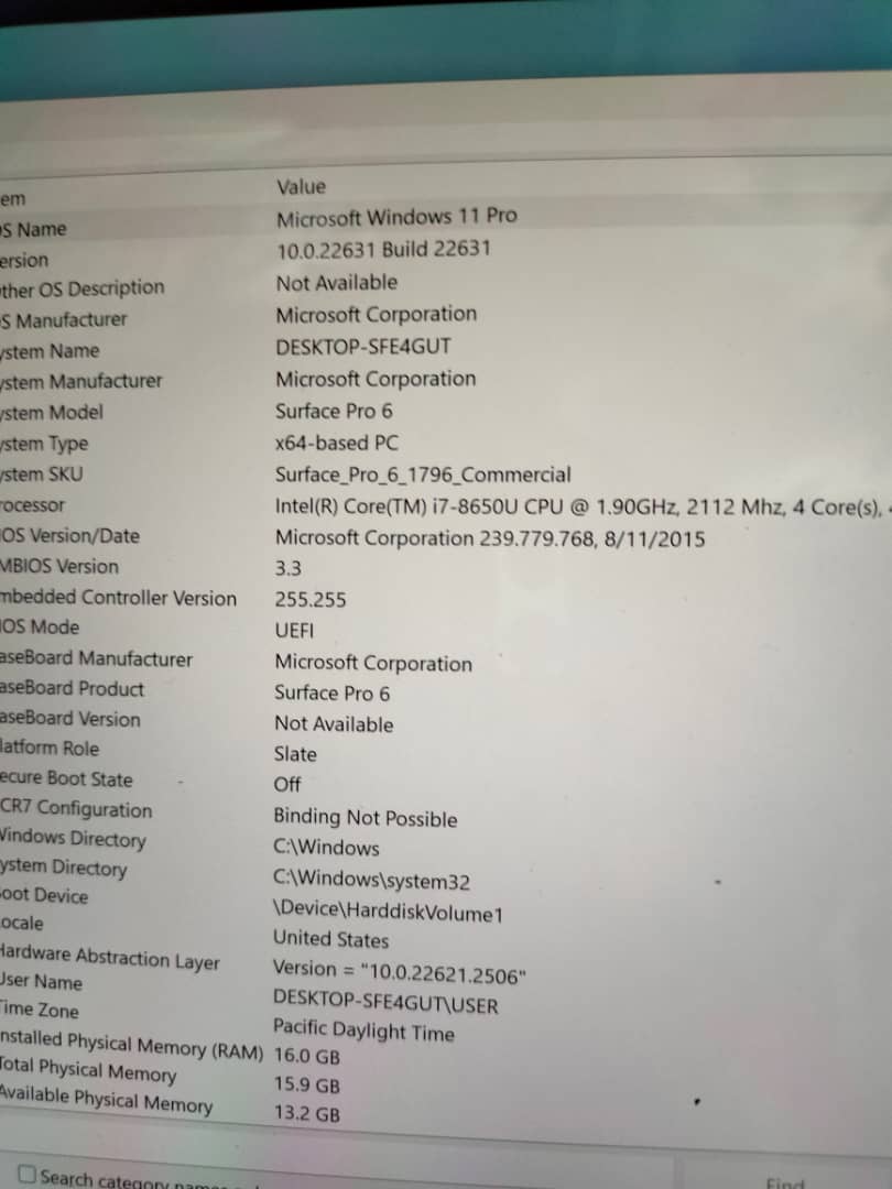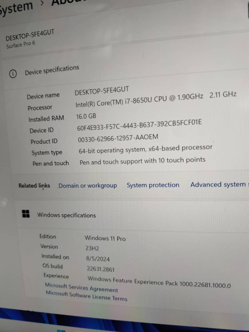 Model : Surface pro 6